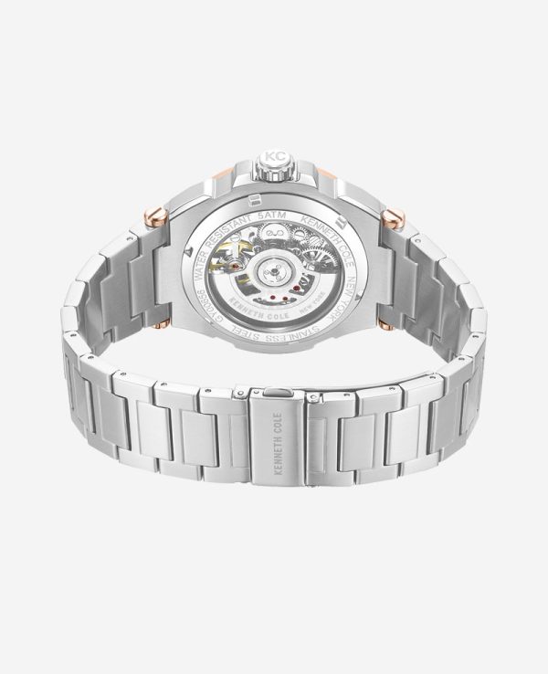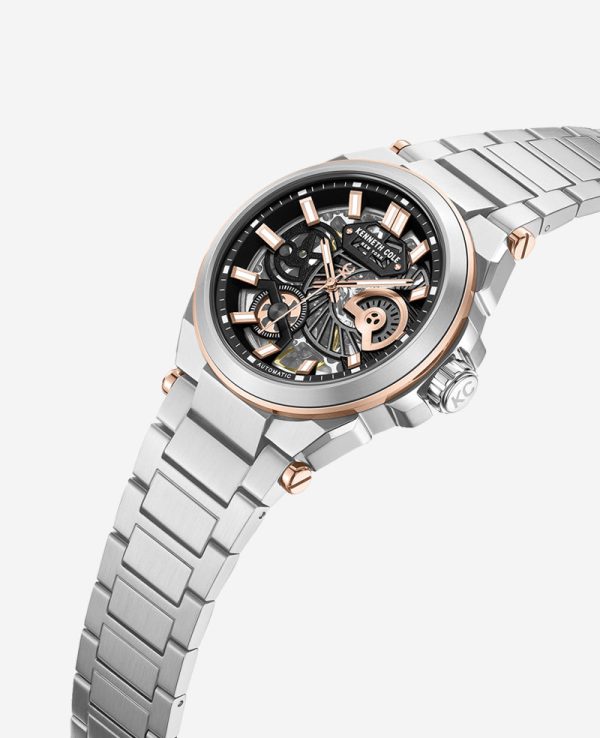 Kenneth Cole Men’s Automatic Skeleton Watch – Black Octagonal Dial with Stainless Steel Bracelet