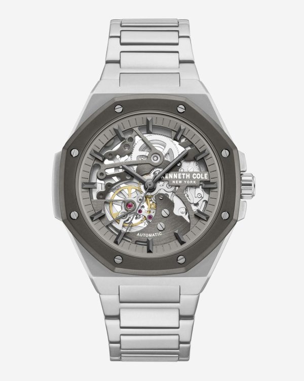 Automatic | Men Kenneth Cole Skeleton Octagonal Automatic Bracelet Watch Gun Silver