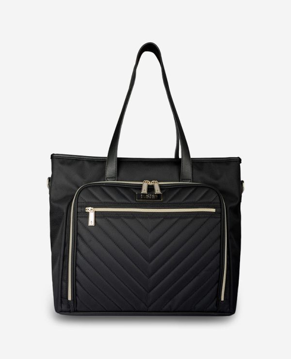 - Tote is made from a stylish chevron quilted polyester twill exterior with fully lined tear-resistant interior