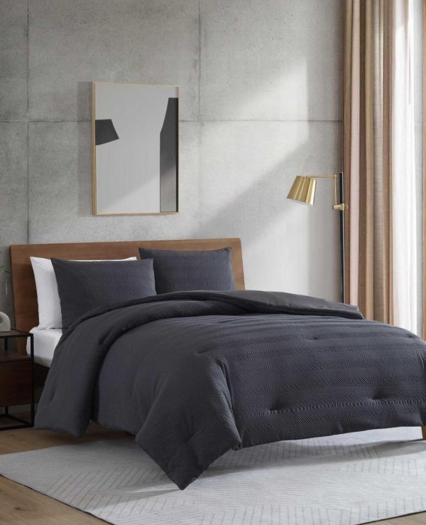 Kenneth Cole Merrion Grey Reversible Comforter & Sham Set – 100% Cotton with Polyester Fill