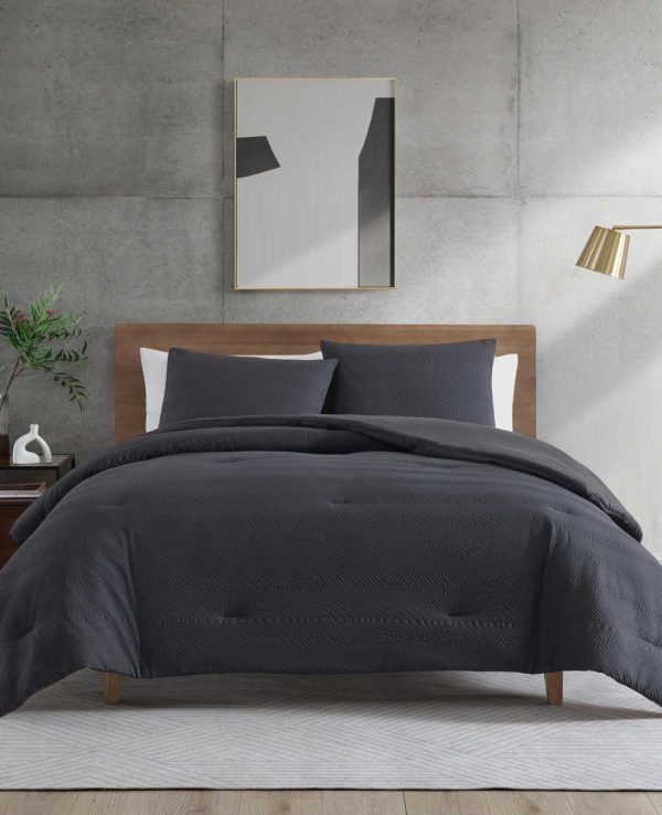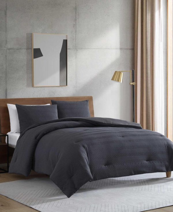 Kenneth Cole Merrion Grey Reversible Comforter & Sham Set – 100% Cotton with Polyester Fill