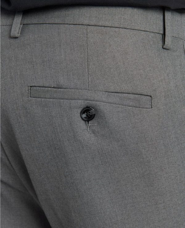 - Hook and bar closure for a seamless look in a flat front modern-fit silhouette