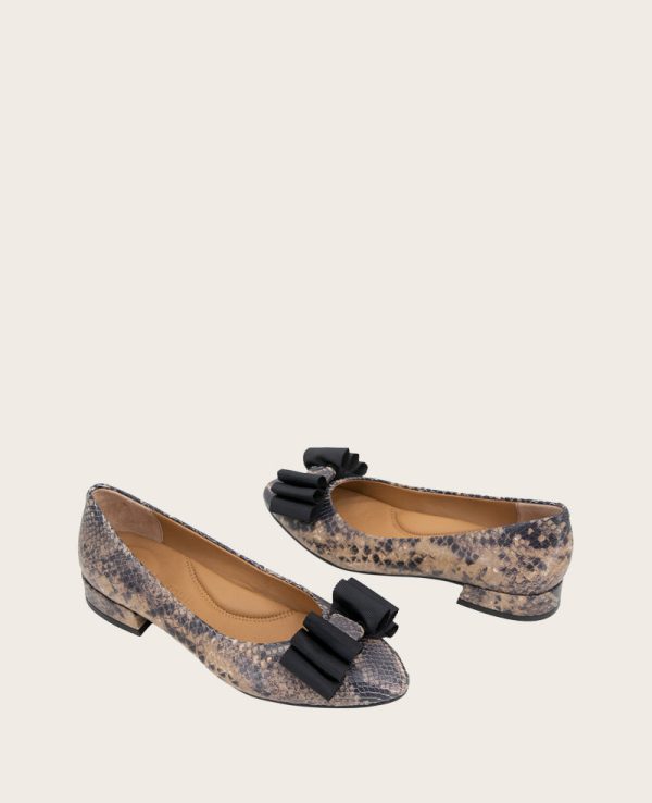 Gentle Souls | Women Kenneth Cole GENTLE SOULS – Atlas Snakeskin Leather Bow Flat Brown Snake Leather