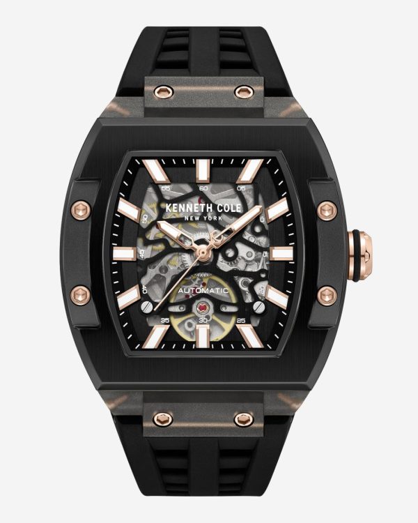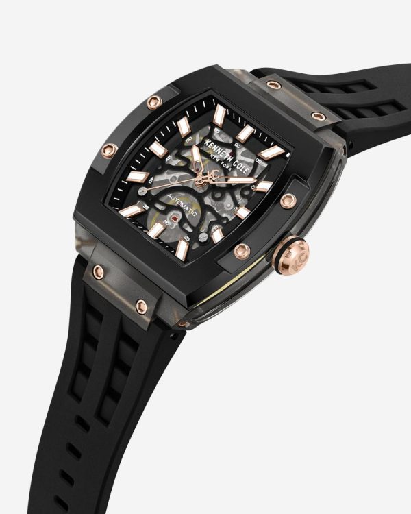 Automatic | Men Kenneth Cole Skeleton Automatic Silicone Watch Black