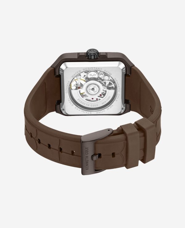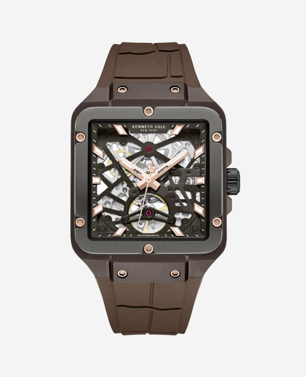 Kenneth Cole Men’s Automatic Skeleton Watch with Brown Silicone Strap