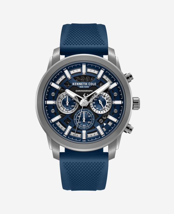 Kenneth Cole Men’s Blue Chronograph Sport Watch with Silicone Band & Date Display