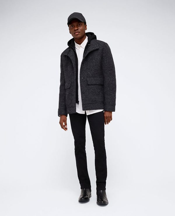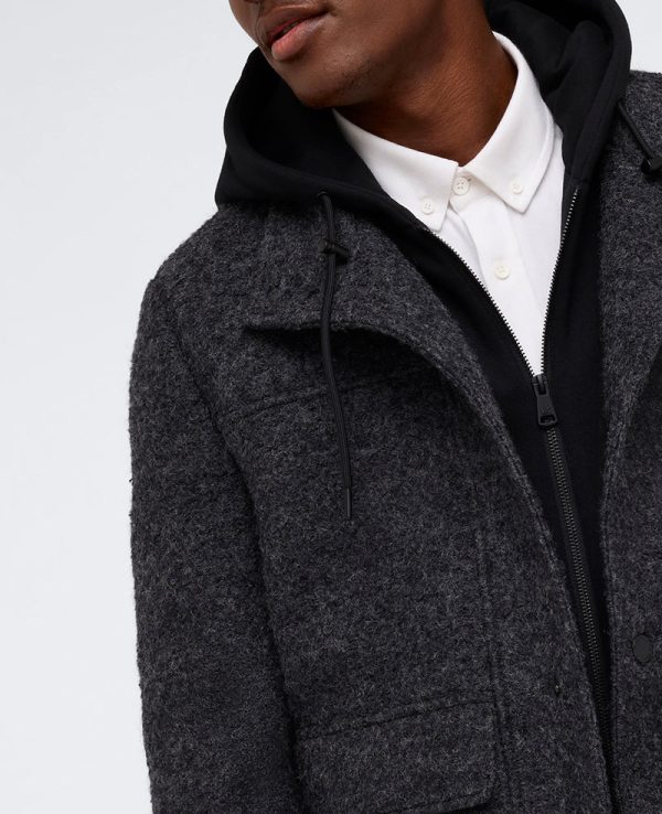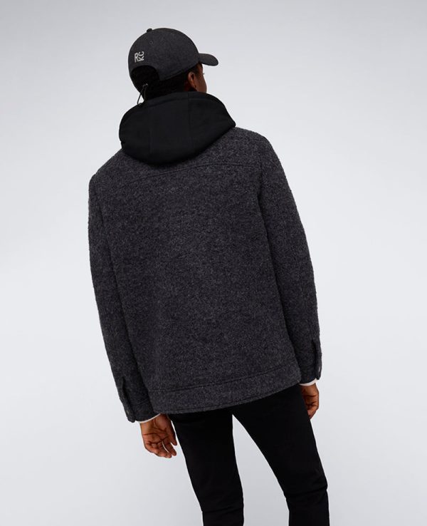 Kenneth Cole Men’s Boucle Wool Jacket with Attached Hood – Charcoal