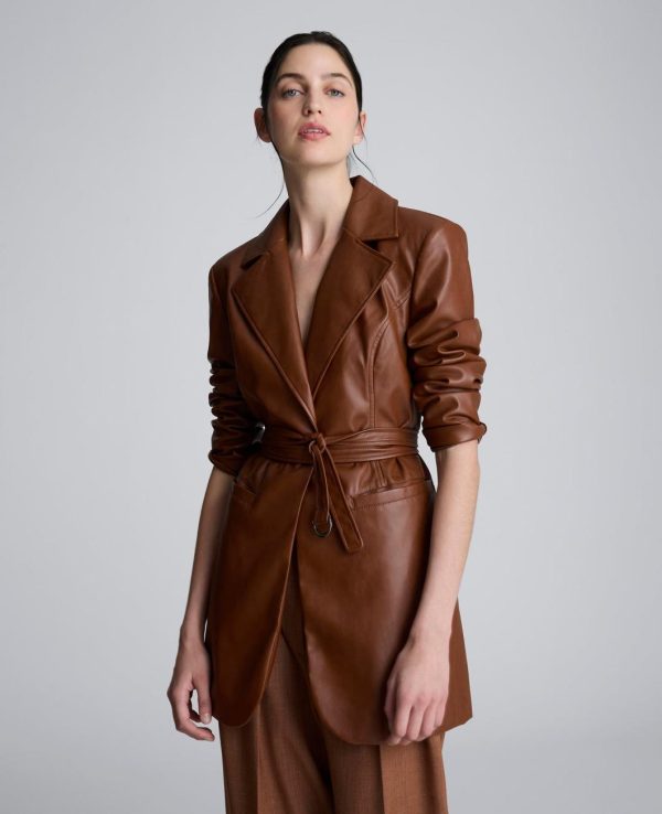 Blazers, Jackets & Vests | Women Kenneth Cole Faux Leather Belted Trench Dark Umber