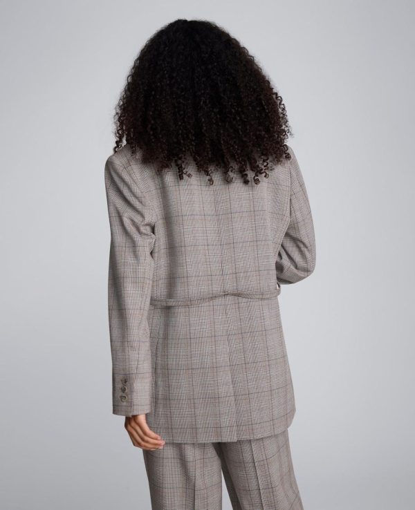 Blazers, Jackets & Vests | Women Kenneth Cole Plaid One Button Belted Jacket Pewter Green Multi