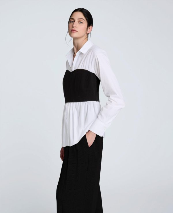Shirts & Tops | Women Kenneth Cole Poplin Long Sleeve Shirt With Bustier Pure White