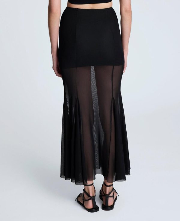 Kenneth Cole Women’s Solid Mesh Pull-On Godet Maxi Skirt with Elastic Waistband – Black