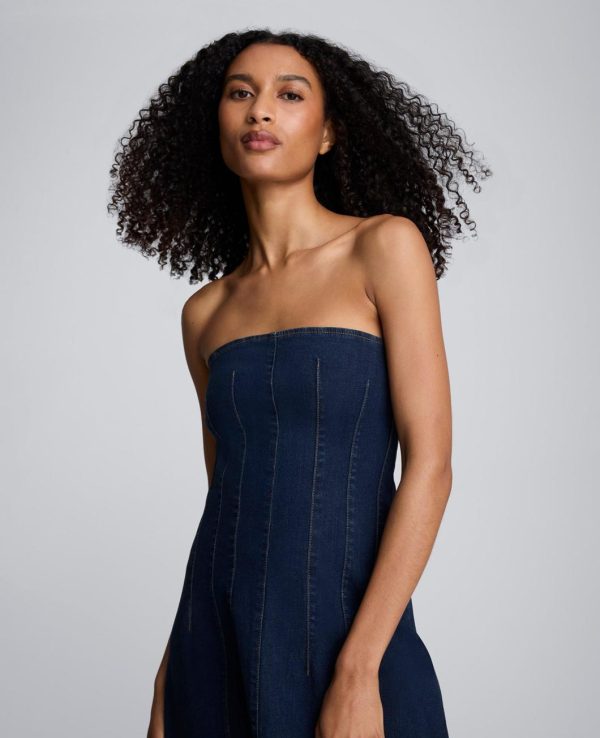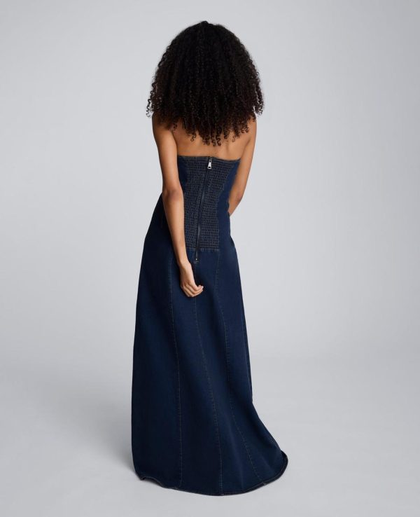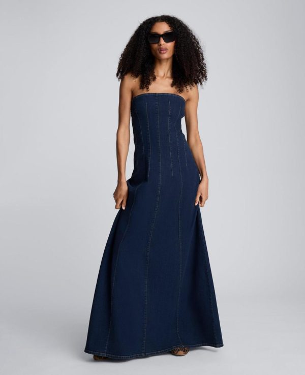 Dresses & Skirts | Women Kenneth Cole Strapless Denim Maxi Dress With Seaming Midnight Rinse Wash