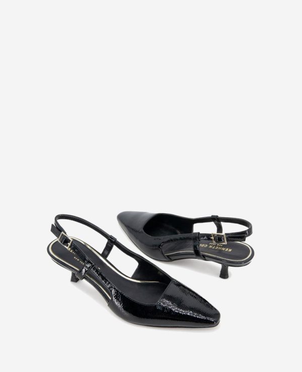Pumps & Heels | Women Kenneth Cole Martha Patent Slingback Kitten Heel Black Crinkle Patent