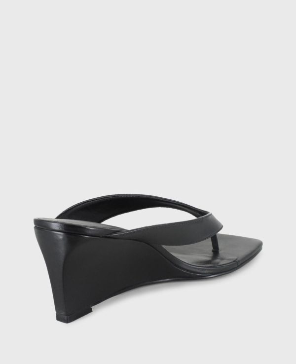 Sandals & Wedges | Women Kenneth Cole Susannah Leather Thong Wedge Sandal Black Leather