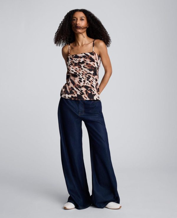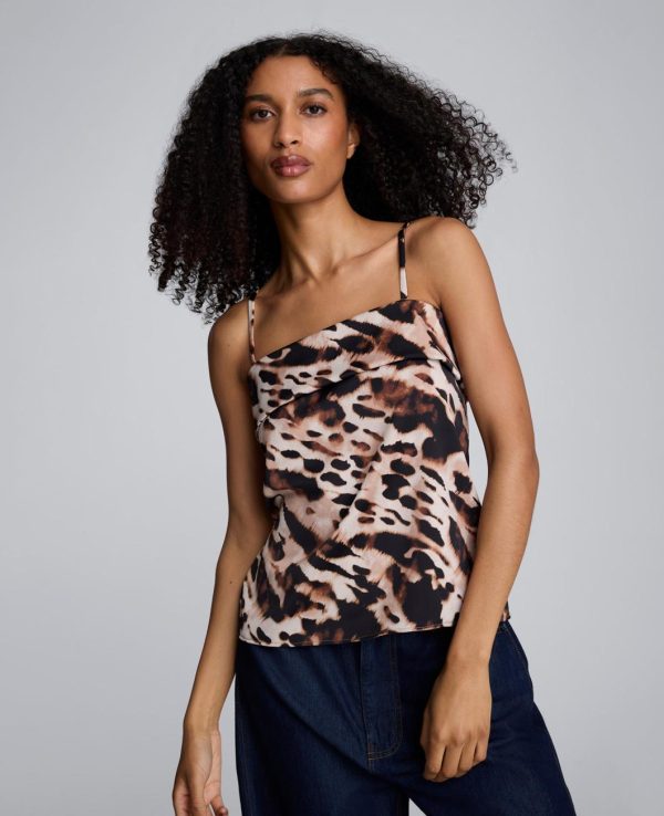 Shirts & Tops | Women Kenneth Cole Animal Print Satin Foldover Spaghetti Strap Cami Black Multi