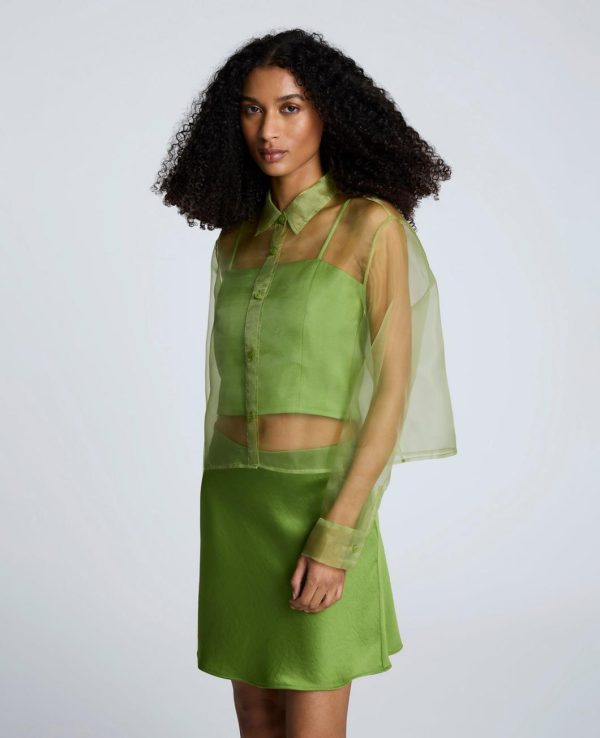 - Sheer organza button front shirt