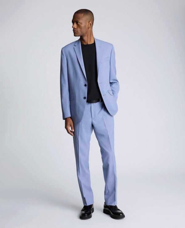 - Jacket: notched lapel, higher armhole placement with stretch, single-breasted with matching shell-look buttons, double vented, side flap pockets