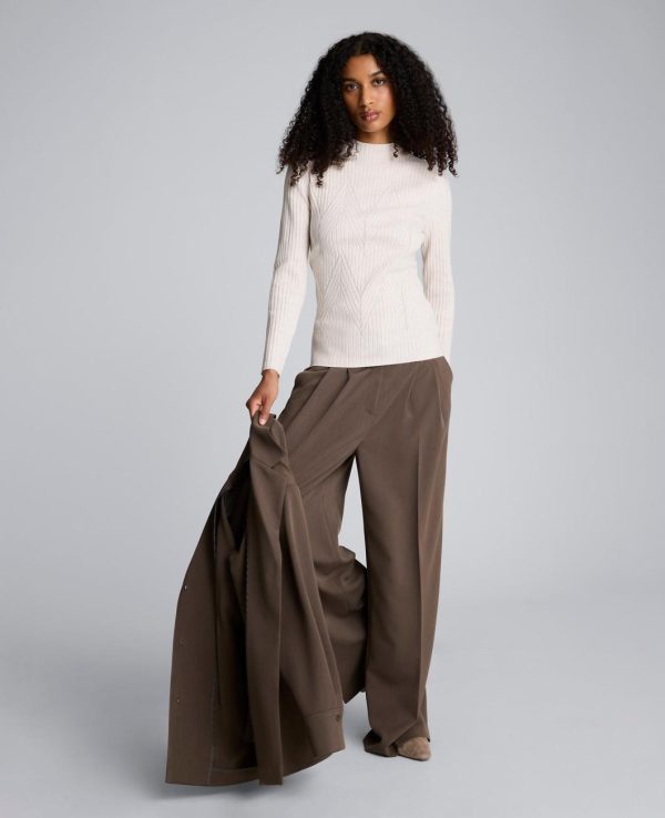 Sweaters & Sweatshirts | Women Kenneth Cole Mock Neck Long Sleeve Rib Chevron Sweater Almond Milk Heather