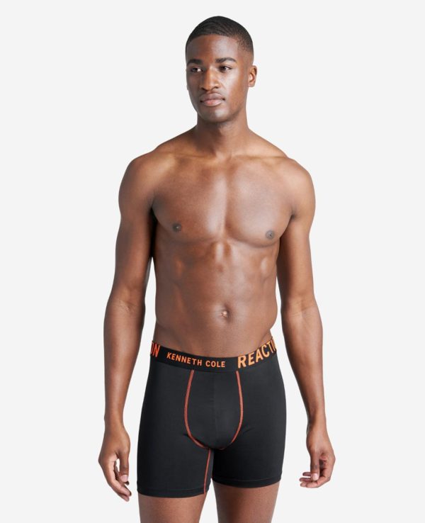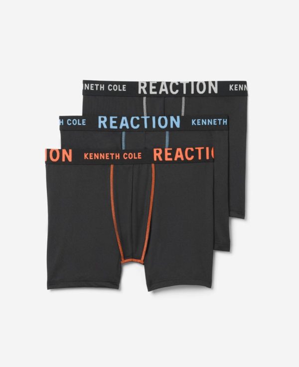 Kenneth Cole Men’s Stretch Boxer Briefs 3-Pack – Moisture-Wicking, Tag-Free Comfort (Red/Grey)